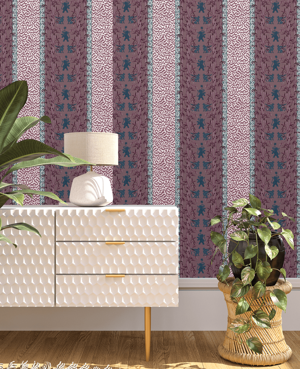 Bitte beachten: Die Elemente auf diesem Muster „Eclectic Bamboo Ribbon Burgundy“ haben die tatsächliche Größe.