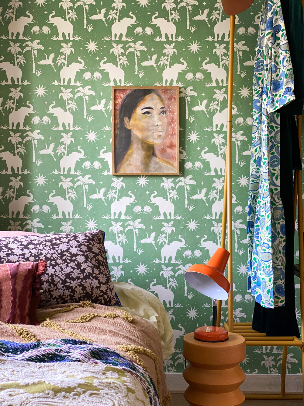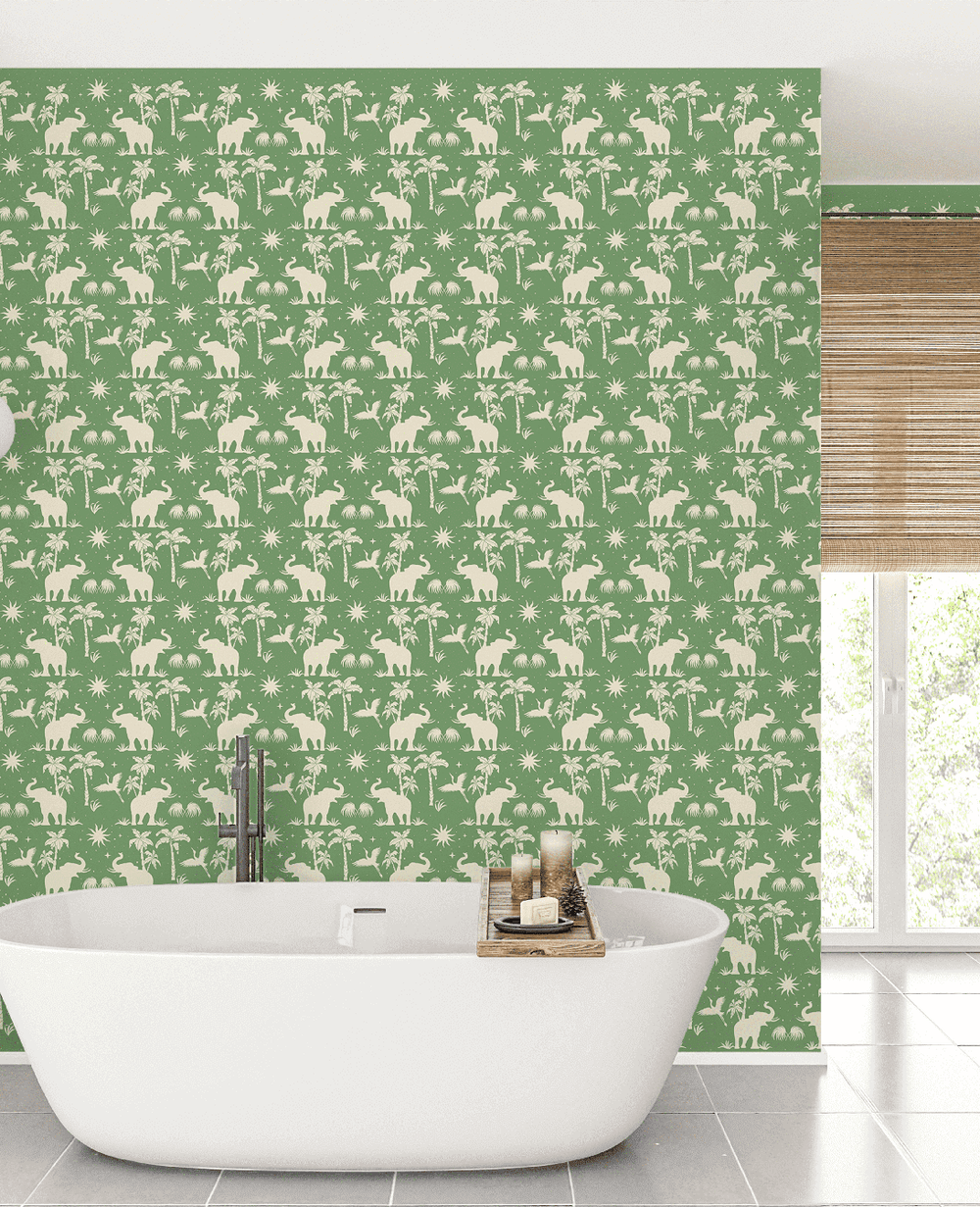 Bitte beachten: Die Elemente in diesem großzügigen Jungle Green-Muster haben die tatsächliche Größe.