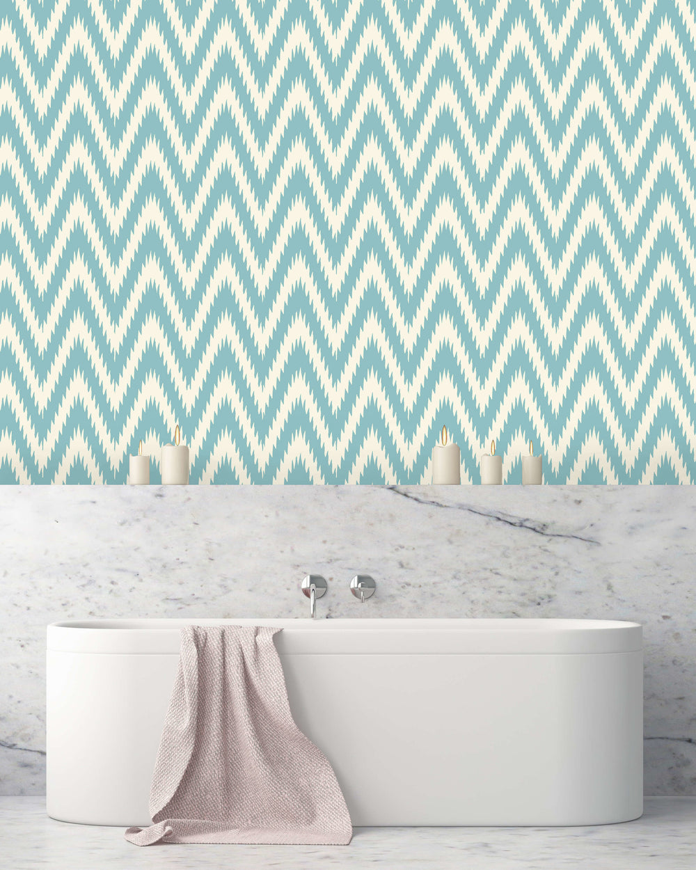 Bitte beachten: Die Elemente in diesem Ikat Blue-Muster haben die tatsächliche Größe.