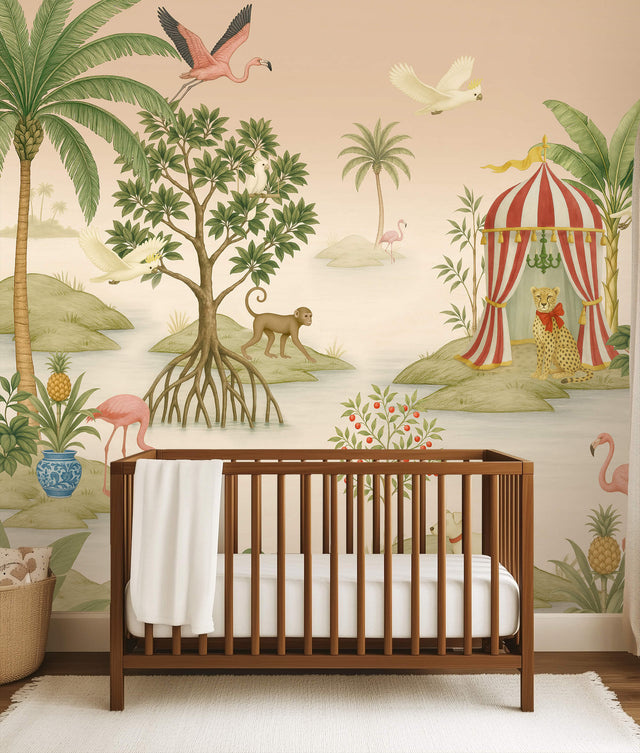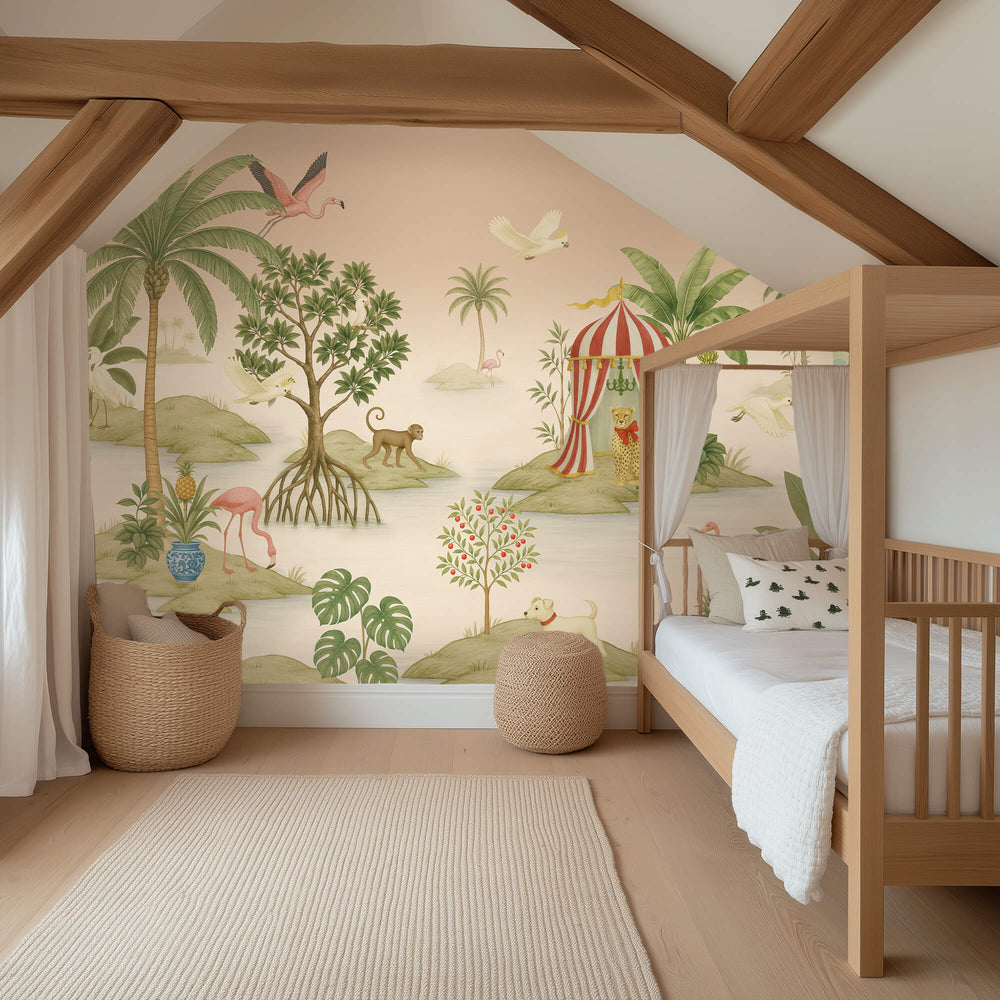 In diesem lebendigen Design gibt es auf jeder kleinen Insel etwas zu entdecken, ein Hündchen, ein Äffchen, ein Tiger… überall gibt es etwas zu sehen! Die warmen Farben und liebevollen Details machen Secret Lagoon zu einem echten Highlight an der Wand.