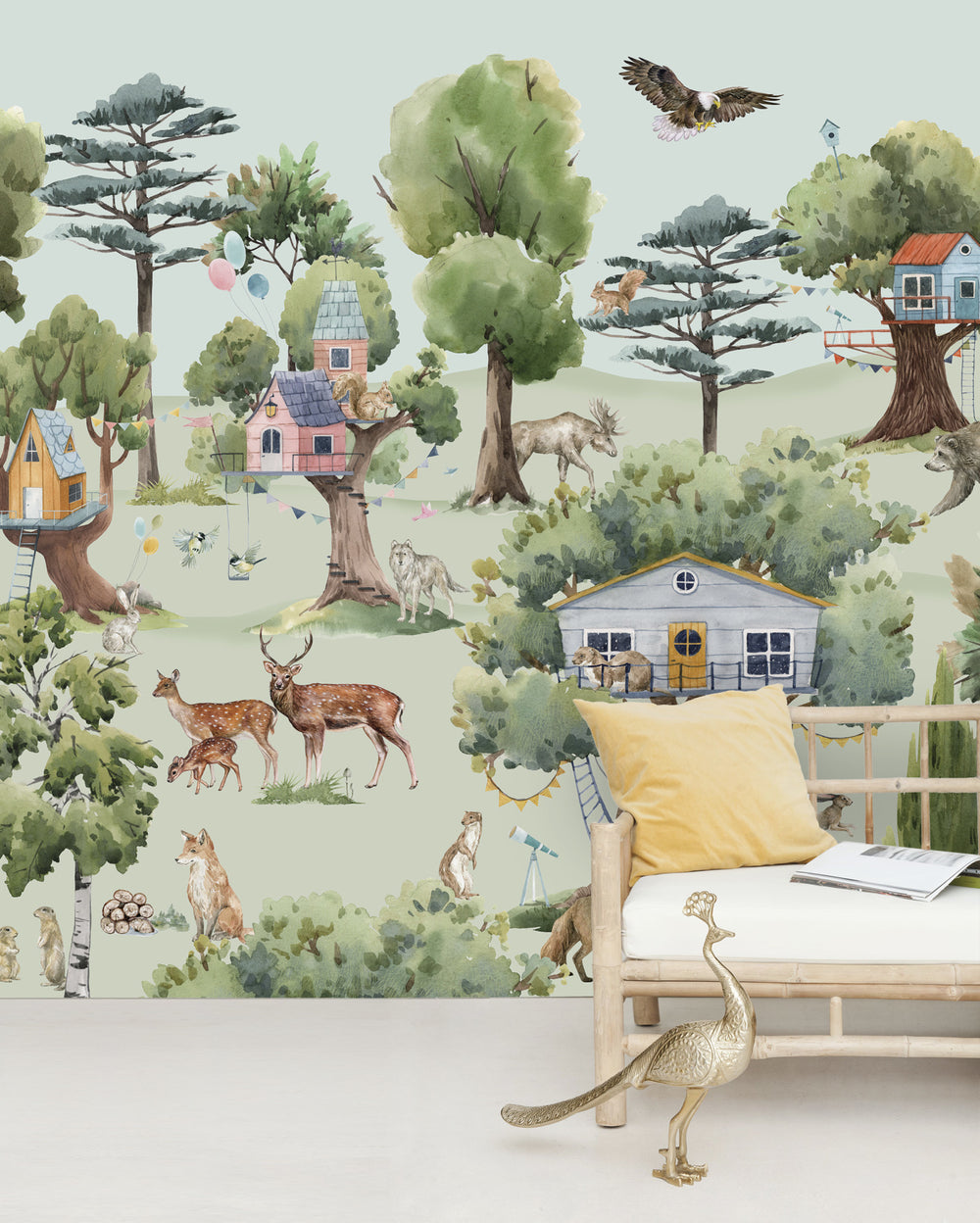 Bitte beachten: Die Elemente in diesem Baumhaus im Wald-Beispiel entsprechen nicht der Originalgröße. Die Höhe des sitzenden Fuchses beträgt 35 cm.