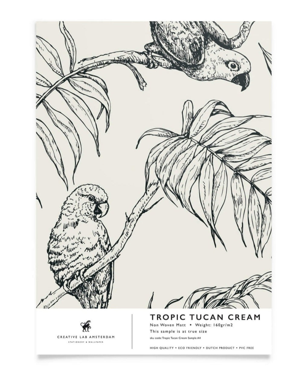Bitte beachten: Die Elemente auf dieser Tropic Tucan Cream-Probe haben die tatsächliche Größe.