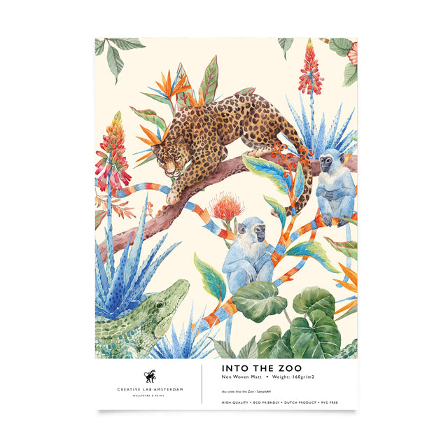 What an eye-catcher! This bold wallpaper brings colour, character, and joy to any room. The playful animals and warm tones make Into the Zoo a true statement – a celebration on your wall!