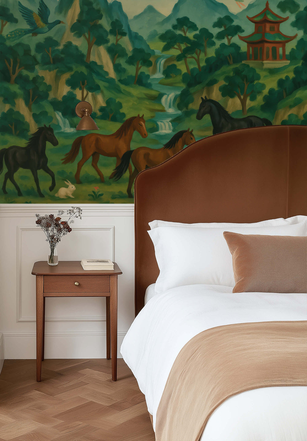 A romantic and dreamy design where horses gather in a serene valley. The warm tones and soft shapes exude calm, love, and connection, Spirit Valley brings a sense of harmony to every space.
