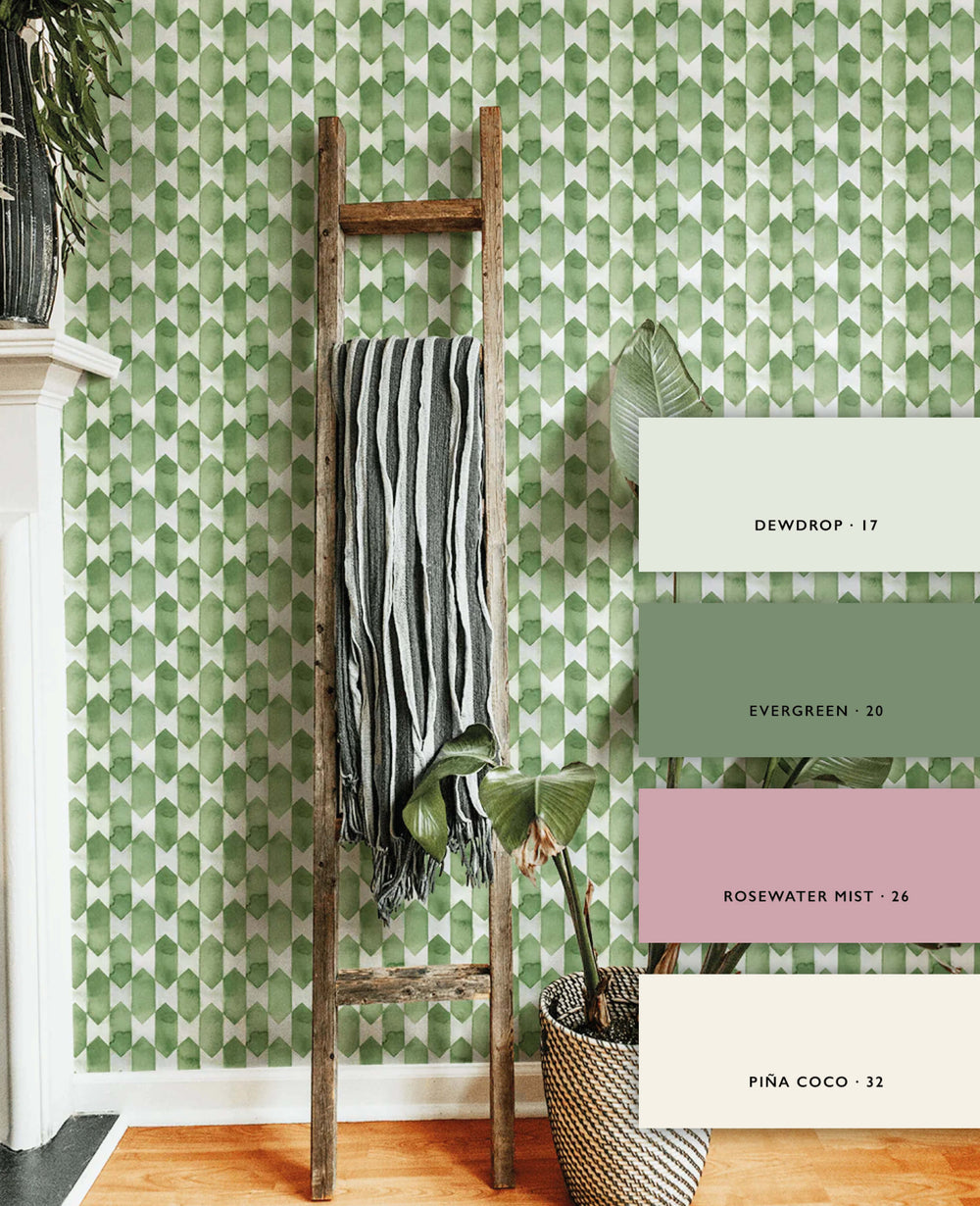 Watercolour Checked Green Wallpaper