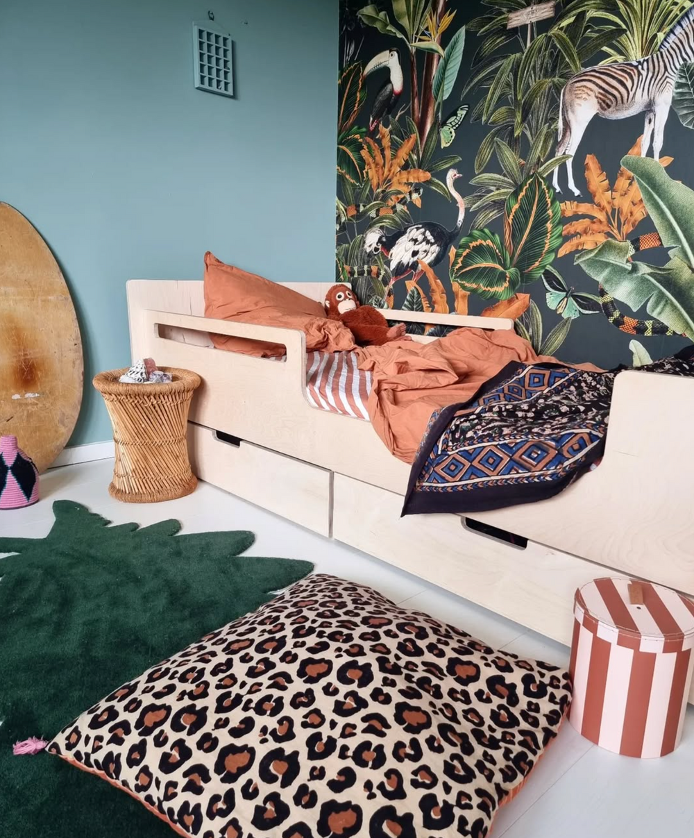 Gepersonaliseerd behang betekent dat we elk ontwerp kunnen leveren in de exacte afmetingen van jouw muur(en). We passen het ontwerp zo aan dat het perfect aansluit. Heb je bijvoorbeeld een schuine muur, een bed of kast tegen de muur of een deur, raam of verwarming? Geef ons alle nodige informatie door en wij passen het ontwerp voor je aan!