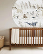 Welkom op de Noordpool, waar alle dieren zich hebben verzameld — pinguïns, ijsberen, zeehonden en orka's — onder het sprankelende licht van de Poolster. Dit betoverende tafereel creëert de perfecte setting voor een kinderkamer en nodigt kleintjes uit om welterusten te wensen tegen al hun nieuwe poolvriendjes voordat ze in slaap vallen.