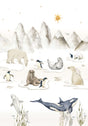 Welcome to the North Pole, where all the animals have gathered — penguins, polar bears, seals, and orcas — under the sparkling light of the North Star. This enchanting scene creates the perfect setting for a child’s room, inviting little ones to say goodnight to all their new arctic friends before drifting off to sleep.