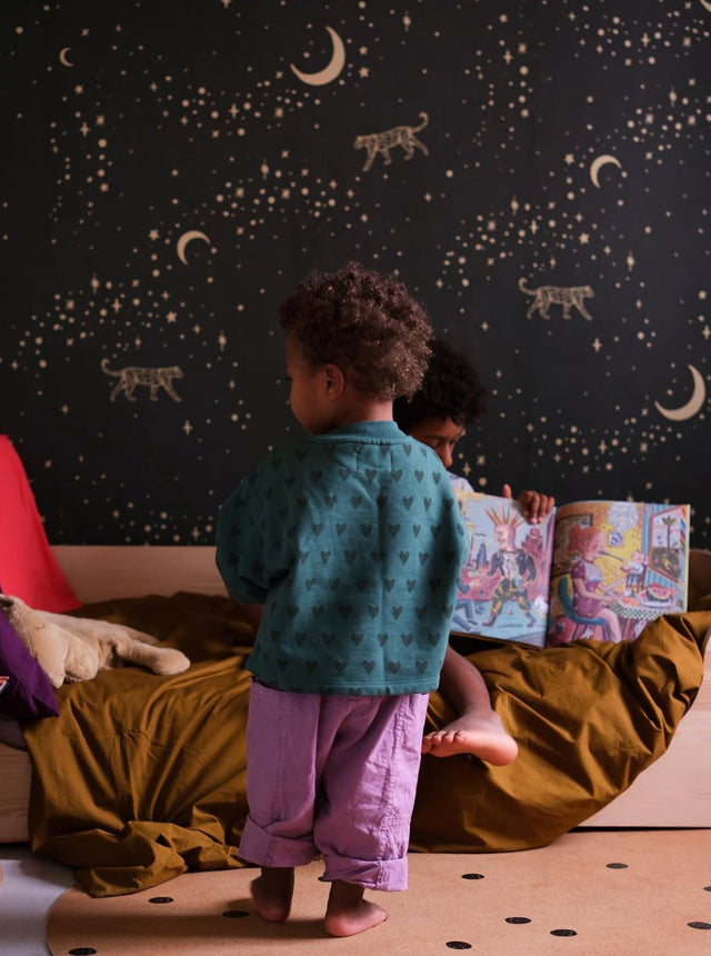 Customised wallpaper means that we can deliver each design in the exact measurements of your wall(s). We adjust the design in a way that it fits perfectly. So in case of a sloping wall, a bed/cupboard against the wall or is there a door/window/heater? Just give us all the information needed and we adjust the design!