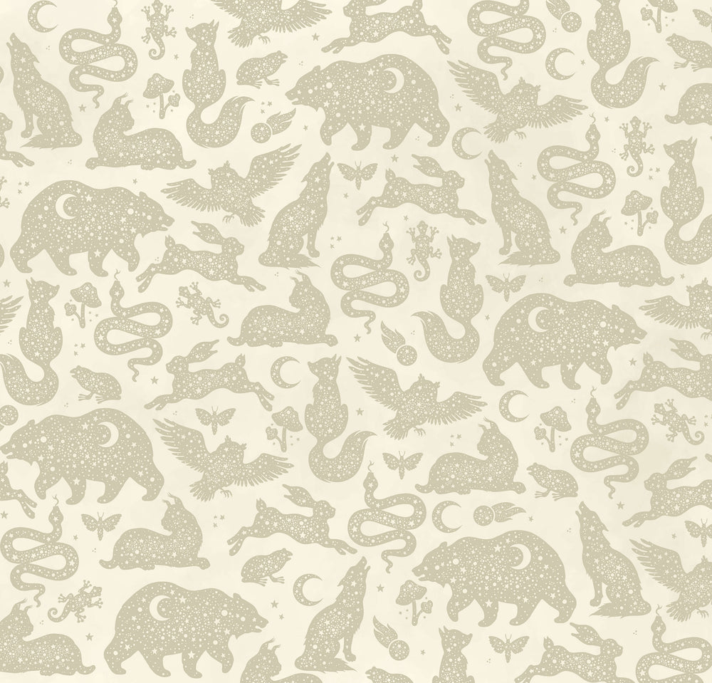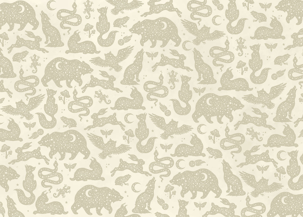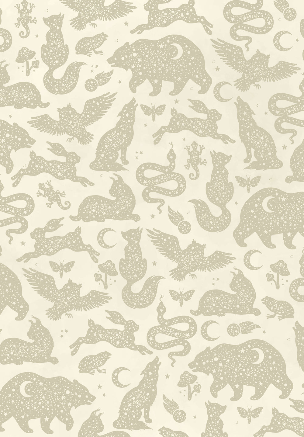 This sweet starry pattern with animal silhouettes is available in multiple colors and adds a cozy, heartwarming touch to any child’s room. A charming design that brings both comfort and a playful sparkle to the walls.