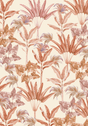 Elegant wallpaper design with different plant leaves in terracotta colors with a pastel background.